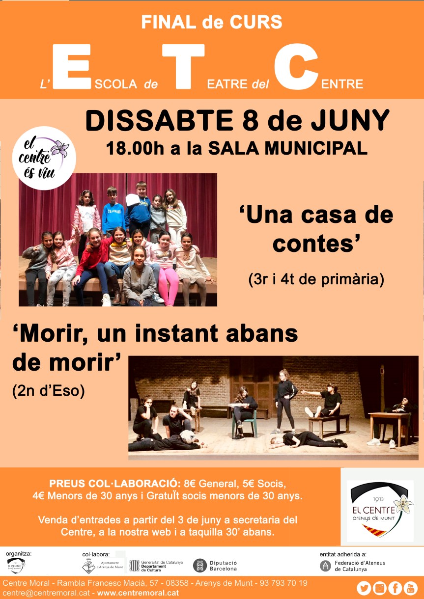 La feina de tot un curs culmina disaabte que ve pels nens i nenes de la nostra escola de teatre. No et perdis el què han preparat i vine a veure el talent d’Arenys de Munt a la Sala Municipal.